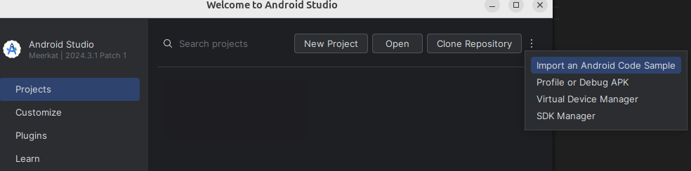 右上の…が縦になっているのをクリックして、下にあるSDK Managerを開きます。