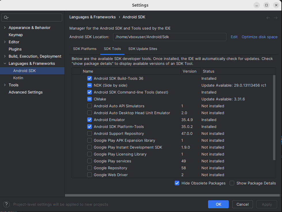 export ANDROID_HOME=/home/vboxuser/Android/Sdk/