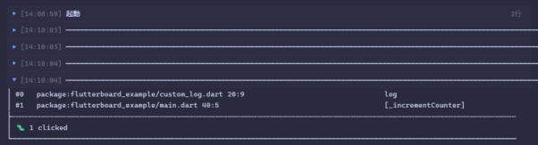 あるいは、あるフレーズを入れてそこを分岐点として折りたたみたいと言うのも結構あります。 サンプルexample/フォルダのFlutterプロジェクトでは、クリックごとに分割させる事も可能です。 [FB:SCREEN]を今度は入力してエンターを押してみると、今度はその行をヘッダーとして表示し、その間は折り畳まれます。