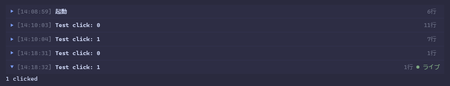 ログ表示右上のグループ化にチェックを入れ、入力フォームに┌─を入れると、こんな感じに┌─の有る行をスプリッターにして折り畳まれます。