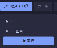 プロセス/ログ下にあるフォームにコマンドを入れ、ラベルに適当に名前を付けて実行を押すと、結果が表示されます。
