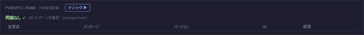 Flutterの場合、依存パッケージのバージョンがパッケージごとに異なるというのを避けるために、バージョン競合だけを抜き出して表示確認したりとか。