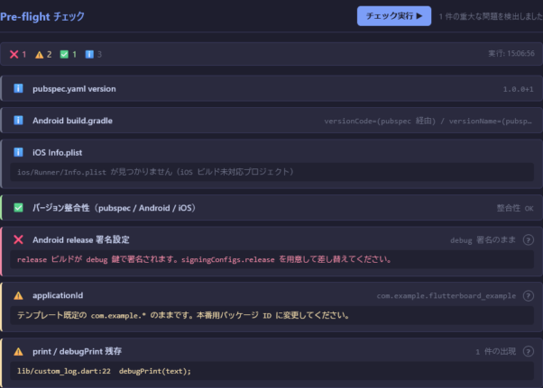 Android設定は、applicationIdやkey.properties, bundle.gradle.ktsの表示と変数機能です。 Androidリリースは、リリースまでの説明を書いたmarkdownをチェック方式で進めて行けるものです。 アップロード前に大まかなチェックポイントをチェックしてくれたり。