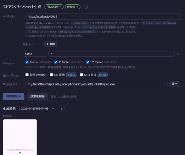 Playwrightに対応しWeb経由でスナップショットを取得したり。