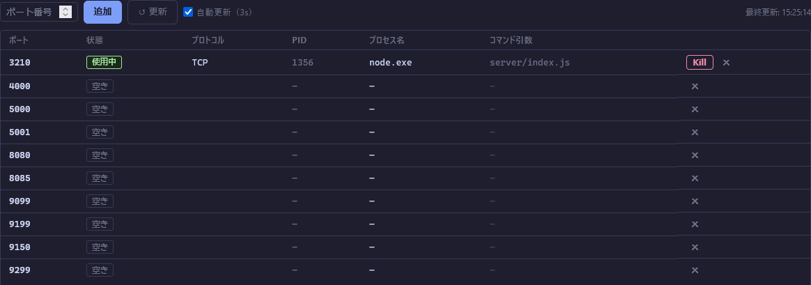 プロセス名とコマンド引数が表示されるので、これで違うのが分かりやすくなっています。